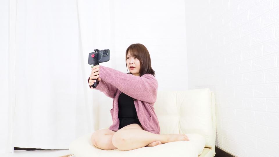 久々の登場のまゆちゃん。巨乳っぷりは健在。久々と言うことでまずは自画撮りで自分のオナニーを魅せる。相変わらず感度の高い巨乳を揉みながら手はまっすぐにアソコへ。服から巨乳を“取り出す”と自ら乳首をペロペロ。うっすらと生えている陰毛の下の縦割れまんこを指でなぞり指に唾を付けクリトリスを激しく擦る。後半バイブ∩を取り出しズコズコ始める。後ろから突かれるのが好きなまゆちゃんは四つん這いになり自らバイブ∩で突きまくる。